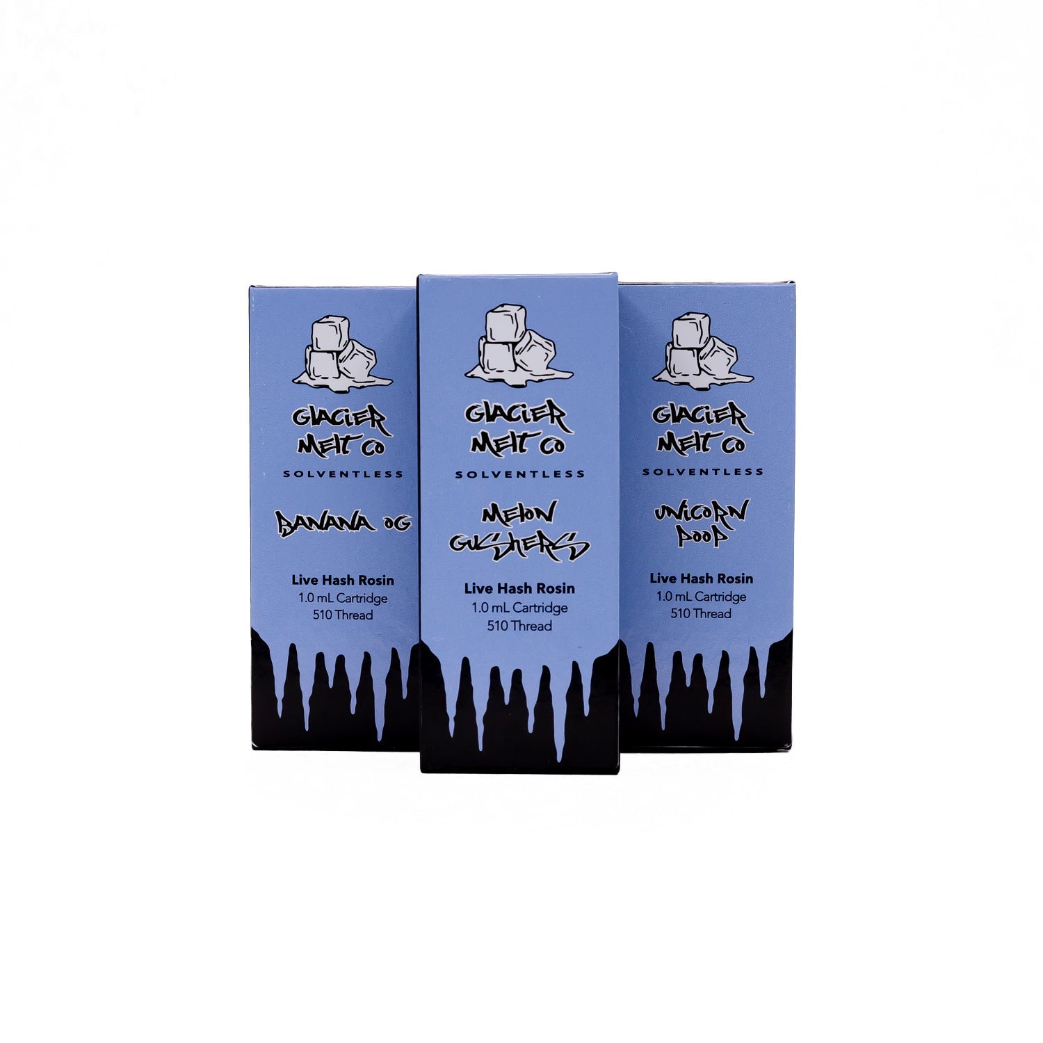 Glacier Melt Co vape cartridges are made from washing fresh frozen flowers in ice water to make terpene-rich bubble hash. The hash is freeze dried and pressed into rosin at low temps preserving the full spectrum of cannabinoids, flavinoids, and terpenes represented in our hand-selected genetic offerings.